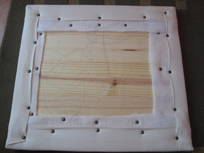 Making the board was simple enough, but the trickiest part, because I was on my own making it, was pulling the batting and fabric tight around the edges. I wanted to use our staple gun, but could not find it anywhere.