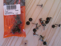 I made the ironing board with Pine shelving and upholstery tacks. Of course I used batting and fabric large enough to fold over the board and a hammer too.